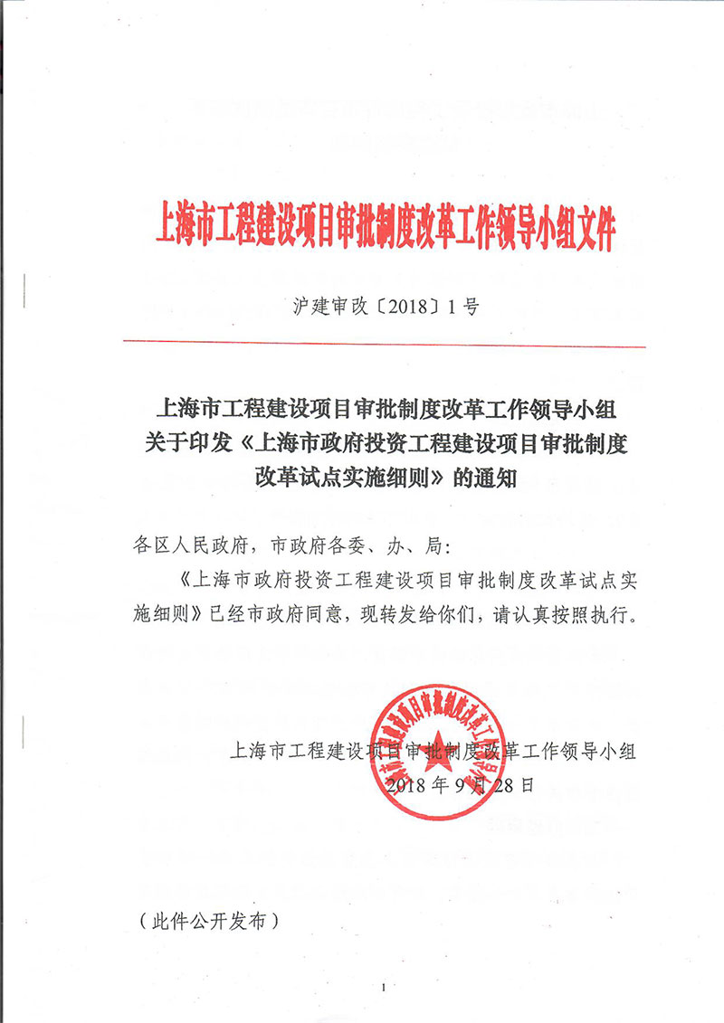 上海市政府投资工程建设项目审批制度改革试点实施细则